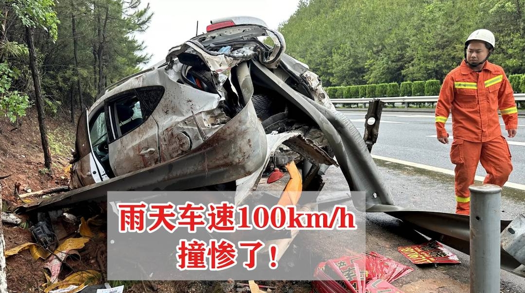 近日在泉南高速江西興國段,李某在雨天駕車時,沒將路面濕滑情況放在心上,而是以100km/h的速度行駛,結(jié)果車輛突發(fā)側(cè)滑直撞路側(cè)護(hù)欄。車頭車尾均嚴(yán)重受損,車尾更是被護(hù)欄刺穿,幸運(yùn)的是未造成人員傷亡。